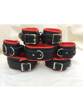 GENUINE COW LEATHER 7 PIECE HEAVY DUTY PADDED BONDAGE RESTRAINT SET IN RED..
