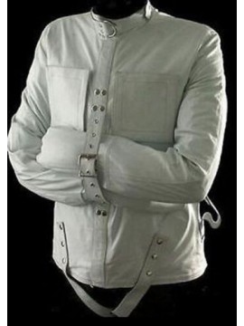 100% REAL COW WHITE LEATHER STRAITJACKET HEAVY DUT..